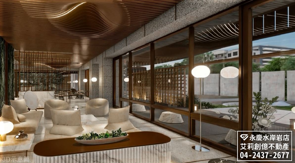 :接待大廳、中庭花園、空中花園、交誼廳、會議室、閱覽室、視聽室、健身房、兒童遊戲區、茶屋